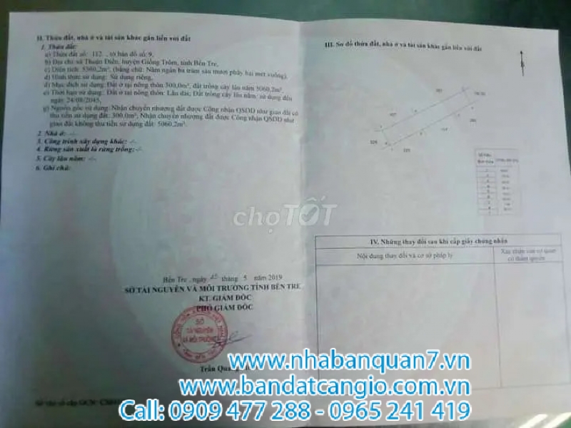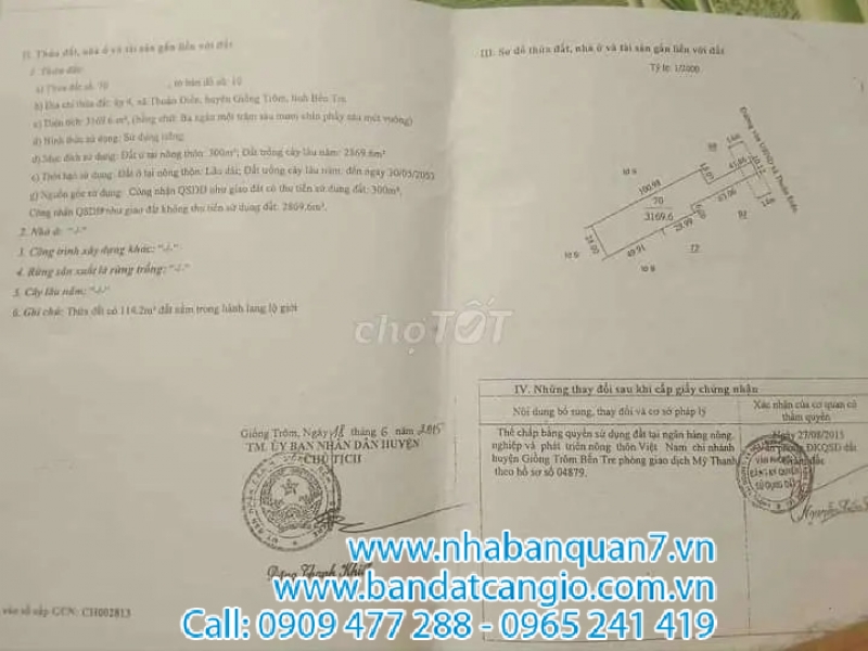 Thông tin chi tiết: !!!3100m2 Đất Mặt Tiền Lộ 19/5. Có căn nhà cấp 4 chữ L. Ngang 10,5m nở hậu 30m đến hết đất . Xã Thuận Điền – huyện Giồng Trôm – Tỉnh Bến Tre.