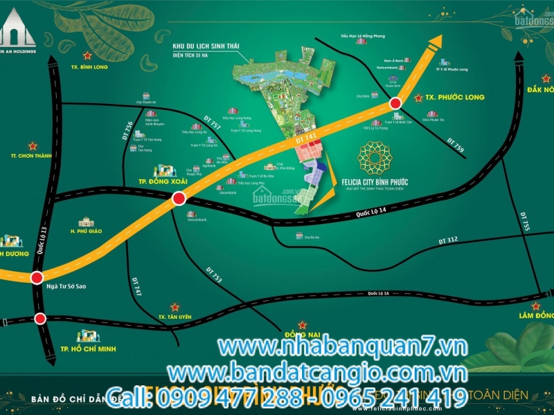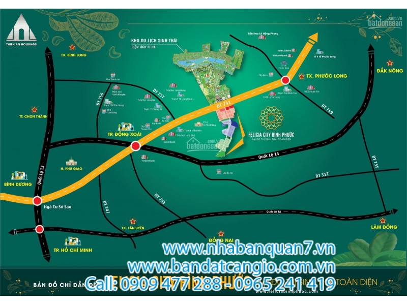- Mặt tiền ĐT 741, tuyến đường huyết mạch liên kết các cụm kinh tế của tỉnh Bình Phước, kết nối giao thông giữa Bình Phước, Bình Dương và các tỉnh Tây Nguyên.