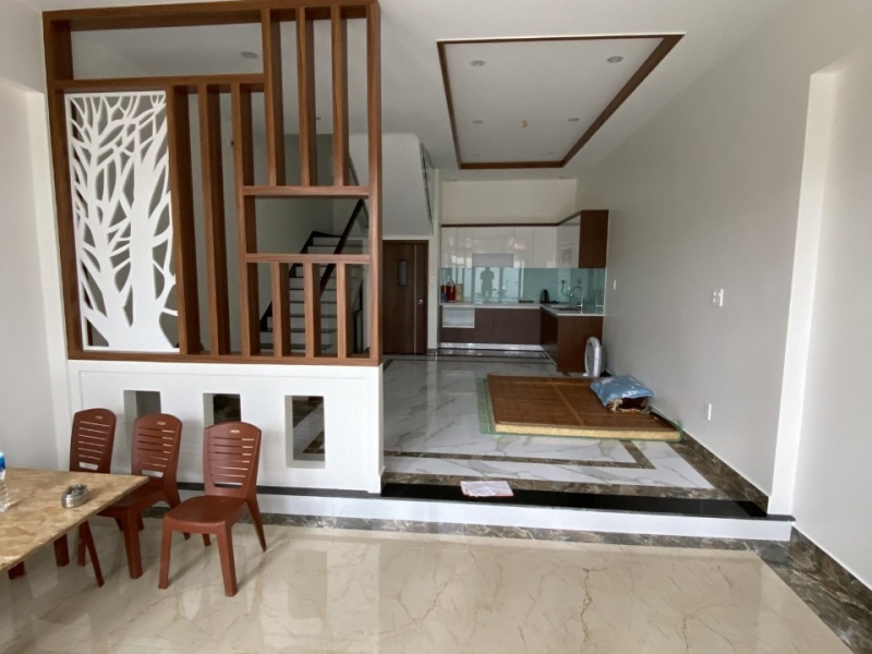 - Trước mặt không bị chắn tầm nhìn, cả một khoảng trời phía trước, kết hợp với hướng Đông Nam rất thoáng mát. - Xây dựng theo kiến trúc mở, nên mọi cảnh quan trước mặt thu vào tầm mắt. - Cấu trúc: phòng khách, 3 phòng ngủ, phòng thờ, bếp ăn, chỗ để xe, sân phơi, 3 toilets.