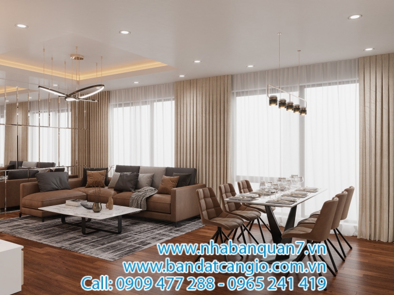 + Không gian bếp gắn kết cùng nơi sinh hoạt chung (phòng khách) không phải căn hộ nào cũng có bởi đây là lối thiết kế dành cho người phụ nữ hiện đại.