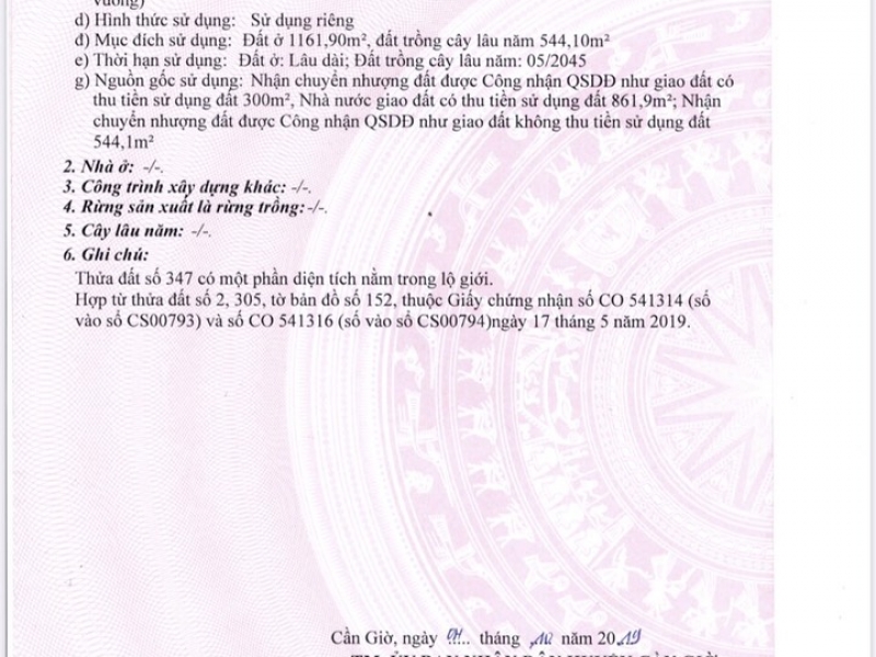 Diện tích: 1706m2 Diện tích đất ở: 1161.90m2, Diện tích trồng cây lâu năm: 544.10m2