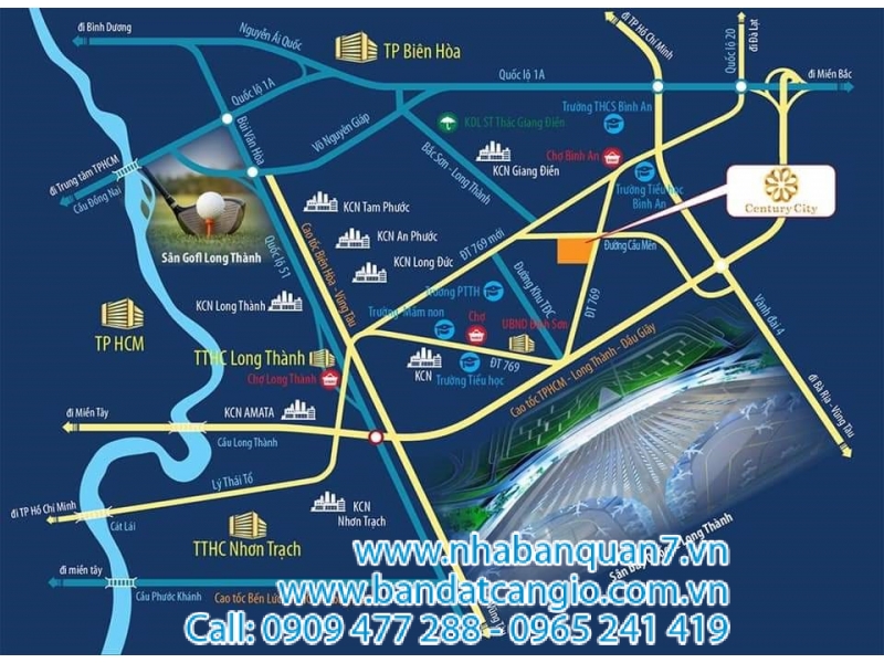 - Khu đô thị Century City, chỉ cách sân bay Long Thành 2 km.
