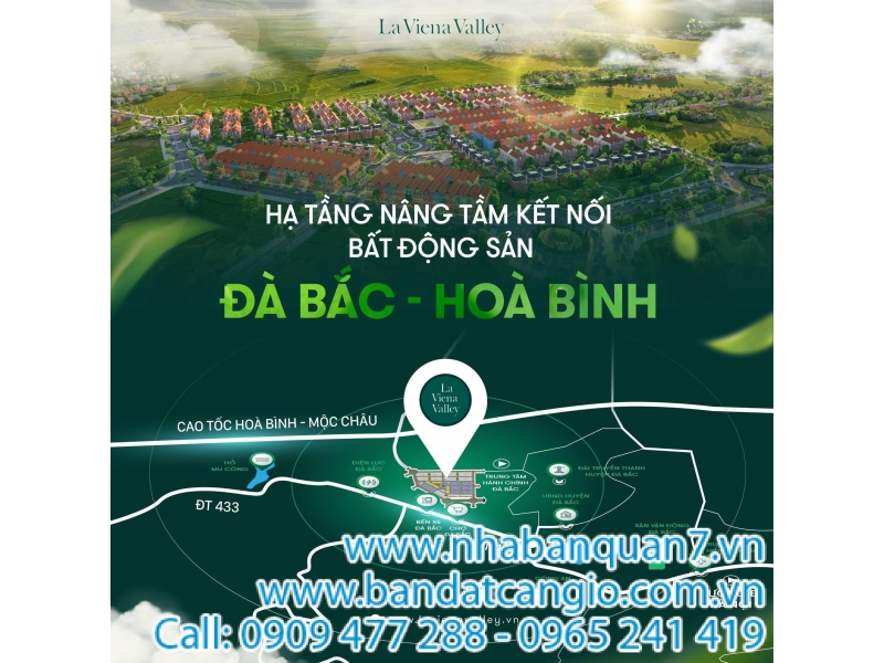 Lô góc 2 mặt đất liền kề diện tích 90m2, nằm trong khuôn viên khu đô thị mới La Viena Valley, vị trí đắc địa gần trung tâm hành chính thị trấn Đà Bắc, cách đường cao tốc mới Hòa Bình - Mộc Châu 200m. Có thể sử dụng để đầu tư hoặc kinh doanh cửa hàng tiện ích, cafe, spa, shop thời trang... Chính sách bán hàng: Thanh toán 6 giai đoạn trong 5 tháng.. Pháp lí: Dự kiến cuối năm có sổ đỏ. Tiện ích: Đường dự án rộng rãi, khuôn viên cây xanh, điện đường trường trạm đầy đủ. Vị trị dự án đắc địa, nằm gần khu phố trung tâm thị trấn Huyện. Kết luận: Dự án này là 1 cơ hội tốt để mua tích lũy Đầu Tư & có thể mua để ở (Được phép tự do xây dựng theo sở thích thiết kế của mình. Liên Hệ: 0983640716(zalo). Thông tin chi tiết: Websitehttps://www.tamthinhland.com.vn/la-viena-valley-c560.html