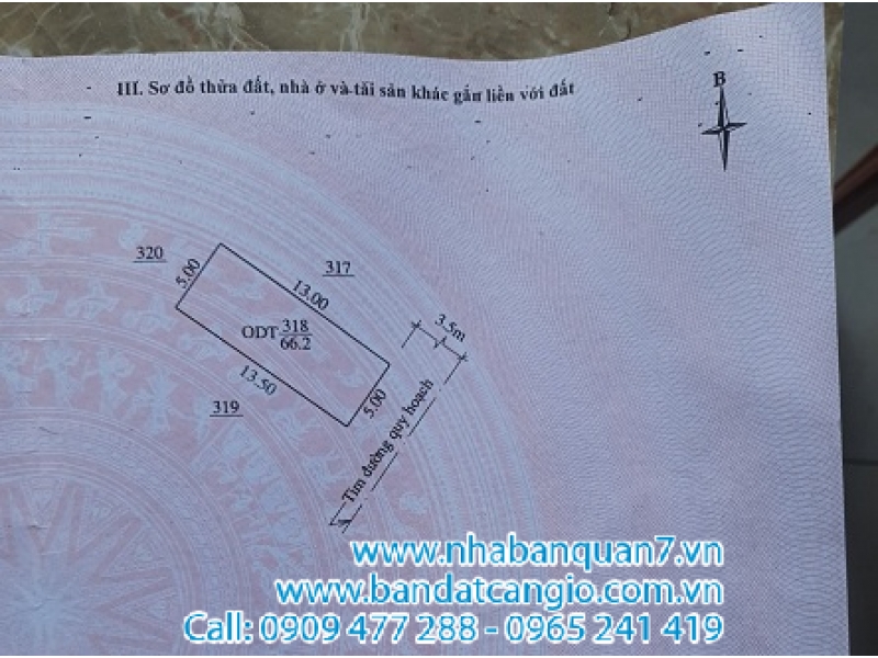 Diện tích : 66.2m2 . Mặt tiền 5m.