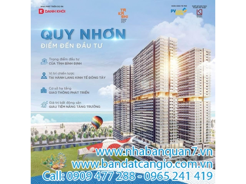 * Ưu đãi đặc biệt khi booking Takashi Ocean Suite, quý khách sẽ nhận được: Chiết khấu 2% + tặng 3 chỉ vàng cùng 01 chuyến du lịch tham quan căn hộ biển tại Quy Nhơn.