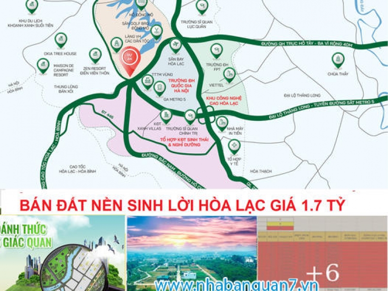 ĐẦU TƯ ĐẤT NỀN TRUNG TÂM HOÀ LẠC CHỈ TỪ 1,7 TỶ/LÔ TỶ SUẤT LỢI NHUẬN 30 - 70% SAU 6 THÁNG