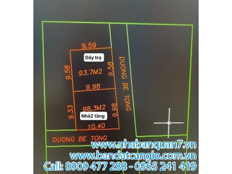 Diện tích: +Lô 1: 98,3 m2( có sẵn nhà 2 tầng)