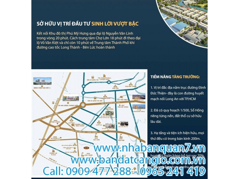 Dự án SAIGON FORTUNE - Loại hình sản phẩm: Đất nền, nhà phố thương gia (shophouse), vi la ven sông. - Diện tích đa dạng: 5x18m, 5x20m, 5x22m, 12x20m... - Vị trí dự án: Xã Long Trạch - Huyện Cần Đước - Long An. Nằm trong KCN Cầu Tràm trên trục đường ĐinhĐứcThiện (40m), hướng từ chợ Bình Chánh vào khoảng 4km. - Cơ sở hạ tầng hoàn thiện100%: điện, nước máy đầy đủ. - Xây dựng tự do: 1 trệt + 2 lầu. Địa thế nằm trong Khu cco6ng nghiệp không khói có thể Đầu tư lướt sóng, xây trọ nhà nghỉ, quán cafe, quán cơm kinh doanh rất tốt... -Pháplý: Chấp thuận chủ trương đầu tư - thông qua chi tiết 1/500 - GPXD hạ tầng - SHR từng lô (sở hữu lâu dài). - Dự chi từ 17tr/m2 (~ 1,6 tỷ/nền). - Ký HĐ đợt 1 chỉ trả trước 800 triệu (50%) có thể sở hữu nền - nhà băng BIDV hổ trợ vay tối đa 50%, lãi suất ưu đãi chỉ từ 7%/năm Gọi Ngay MrTrang để xem đất. Cảm ơn Anh Chị đã xem tin