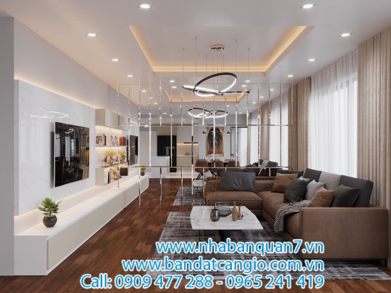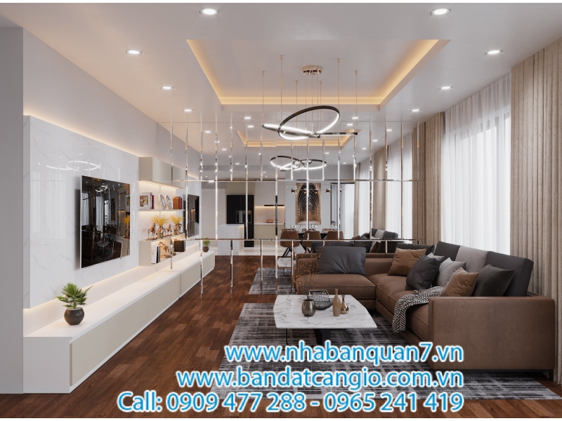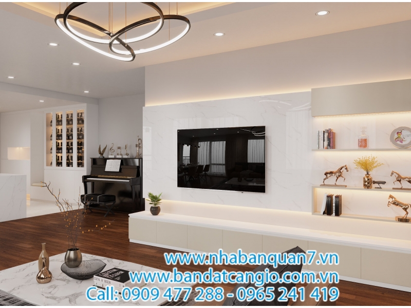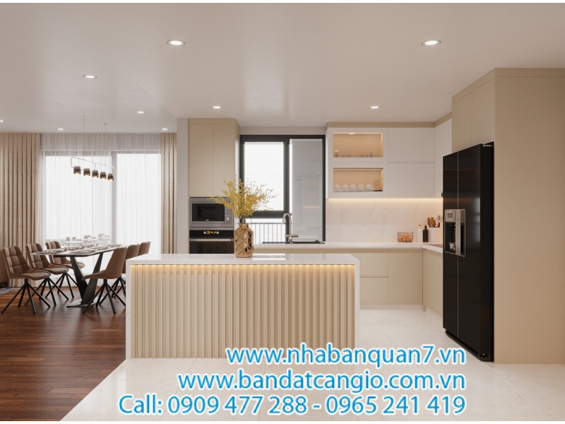 + Không gian bếp gắn kết cùng nơi sinh hoạt chung (phòng khách) không phải căn hộ nào cũng có bởi đây là lối thiết kế dành cho người phụ nữ hiện đại.